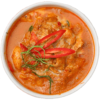 Curry rouge au poulet, boeuf, porc, crevettes ou végétarien, servies avec du riz vapeur, du riz sauté ou des nouilles sautées